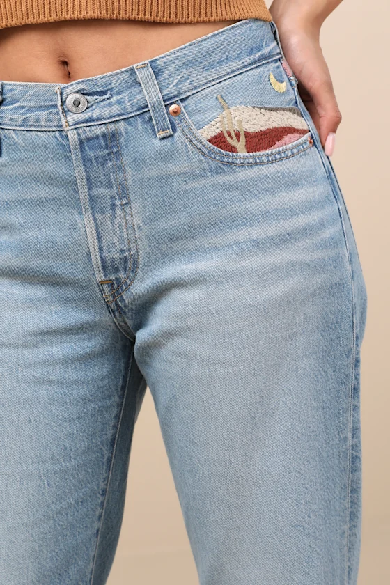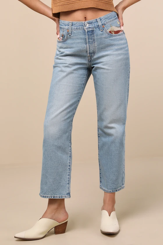 501 90’s Ankle Light Wash Embroidered Straight Leg Jeans