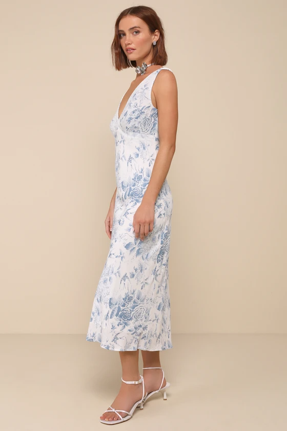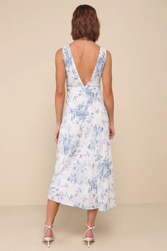 Timeless and seriously sweet, the Thewearstyles Picture-Perfect Days White Floral Lace V-Neck Midi Dress will make sure you look good from every angle! Lightweight, crepe woven fabric features a romantic floral print throughout as it shapes this sweet dress with a deep, lace-trimmed V-neckline and a sleeveless bodice. High, empire-style waist tops a figure-skimming, slip silhouette that continues down to a chic midi hem. Deep V-back lends a flirty finish! Hidden back zipper/clasp.